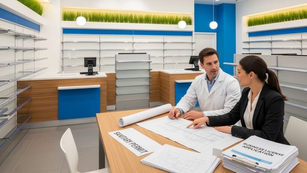 O imóvel precisa estar em conformidade com a RDC nº 44/2009 da ANVISA, que regula o funcionamento de farmácias e drogarias.